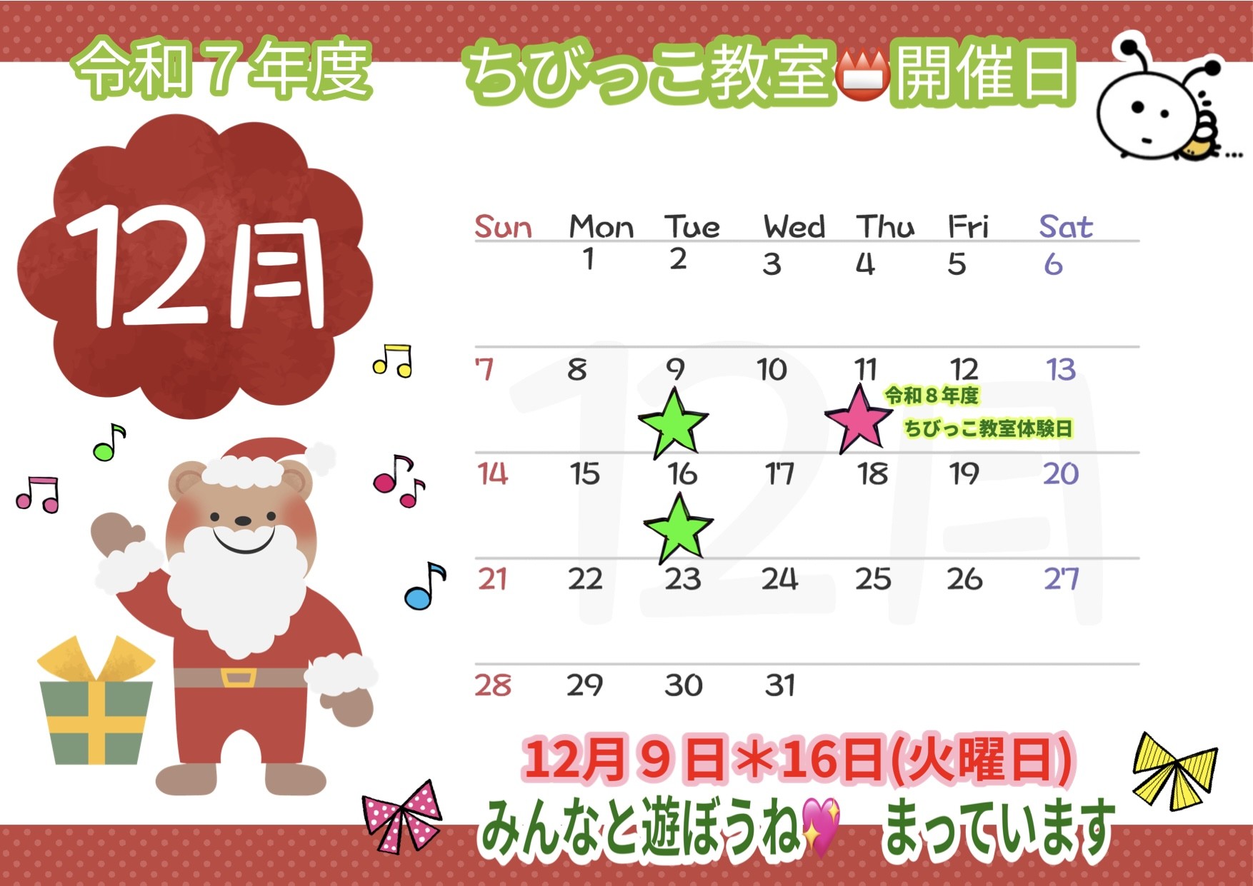 年内のちびっこ教室は残り2回となりますが、体調を崩さないよう元気いっぱい活動していきましょう♡