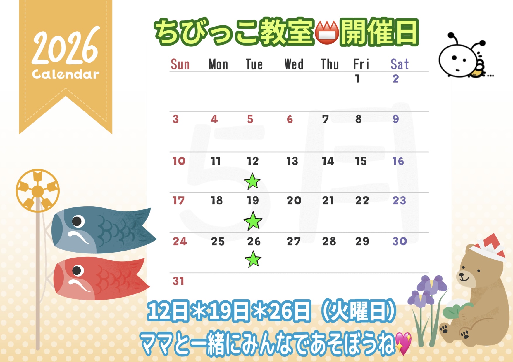 🎏 5月の開催日のおしらせ 🎏