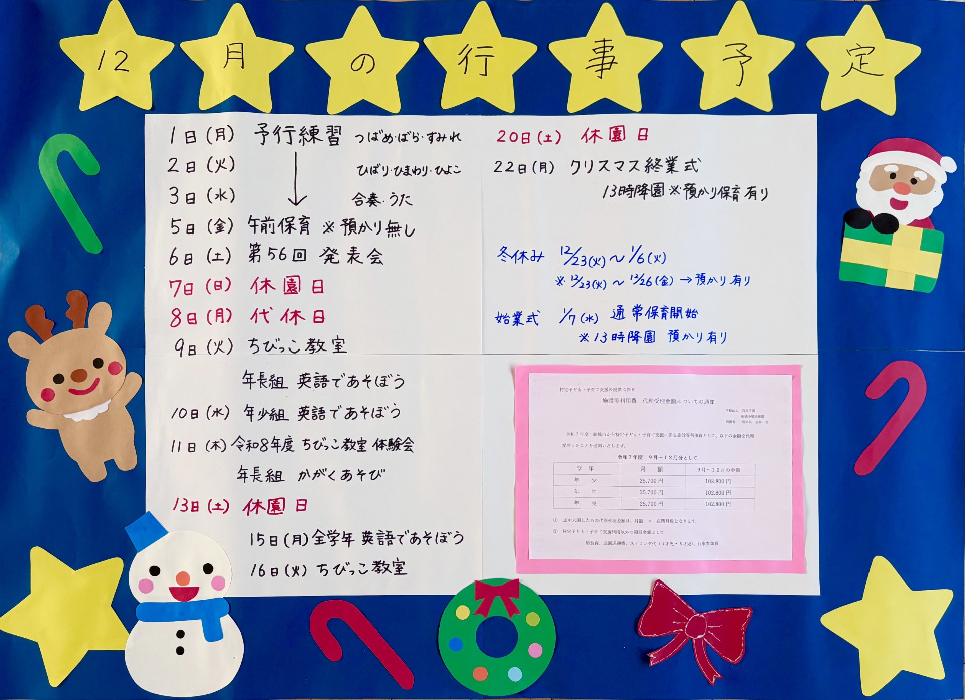 今秋もインフルエンザが流行しておりますので、引き続き感染症の予防や体調の変化など気をつけながらこまめに連絡を取り合い、家庭と園の双方で予防、拡大防止に努めていきたいと思います。